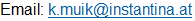 Instantina Ges.m.b.H. Nahrungsmittel Entwicklungs und Produktions Ges.m.b.H. Klaus Muik, Marketing- and Export-Manager Friedrich-Wilhelm-Raiffeisen-Platz 1 A-1020 Wien Tel.: +43 (1) 21137 / 12460 Fax: +43 (1) 21137 / 12400 Web: www.instantina.at